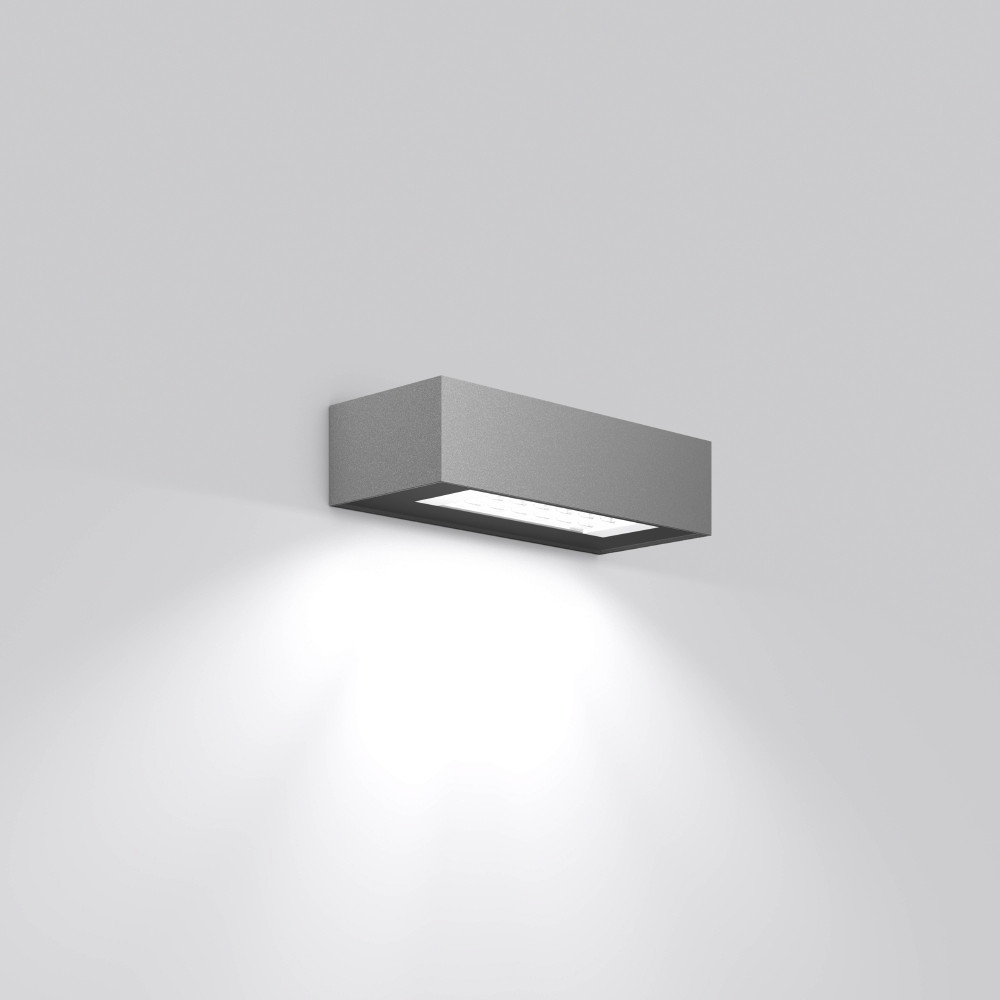 Architektonische Wandleuchte zur Beleuchtung gebäudenaher Bereiche. Gehäuse aus korrosionsbeständigem Aluminium-Druckguss, seewasserbeständig pulverbeschichtet. Serienmäßig mit Membranventil zur Kondenswasservermeidung. Abdeckung für Lichtaustritt Einscheiben-Sicherheitsglas (ESG) klar, Rand bedruckt. Obere Abdeckung Einscheiben-Sicherheitsglas (ESG), schwarz bedruckt. Auswechselbare LED nach Zhaga Standard. Asymmetrisch bandförmige Lichtverteilung für schmale Straßen und Wege. Einfachste Installation durch Plug-and-Play-Stecksystem. Befestigung außerhalb des gedichteten Bereiches mit Bohrungstoleranzausgleich. Leuchte in jeder Brennlage montierbar. DALI-Betriebsgerät integriert. Für Durchgangsverdrahtung geeignet. MultiLumen: Leuchtenlichtstrom ist in 3 Stufen einstellbar. Werkseitig auf Stufe 2 voreingestellt.