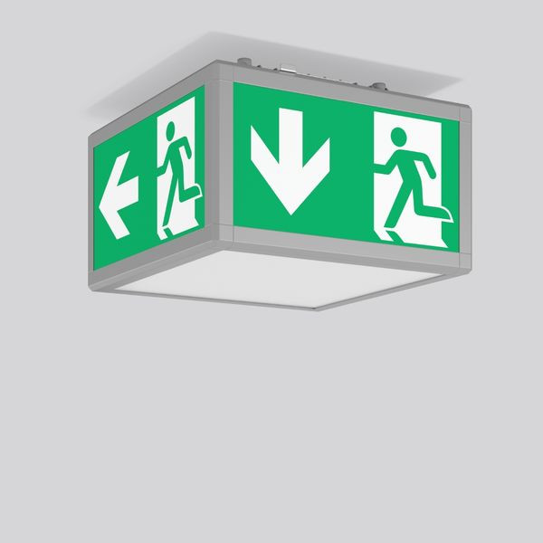 | Kurzbeschreibung | SIGNCUBE IP54, 8,8 W, aluminium, Deckenleuchten, L 351 B 351 H 236, ZB, Not-400 lm, Stromkreis |
