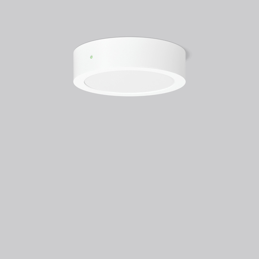 Flexibles rundes Anbau-Downlight mit Multi-Funktionen. Leuchte zur Rettungswegbeleuchtung. Gehäuse Aluminium-Druckguss pulverbeschichtet. Diffusor aus vergilbungsfreiem Kunststoff (PMMA) opal. LED Backlight-Technologie für eine homogene Ausleuchtung der gesamten lichtabgebenden Fläche. Geeignet für Deckenanbau, Wandanbau. Betriebsgerät integriert. MultiColour: Farbtemperatur mit Schaltelement einstellbar. Werkseitig auf 4000 K eingestellt. MultiLumen: Leuchtenlichtstrom ist in 4 Stufen einstellbar. Werkseitig auf Stufe 2 voreingestellt. Einzelbatteriesystem mit automatischem Selbsttest und Rückmeldung über DALI-Bus ausschließlich an das RZB DALI-Überwachungssystem.