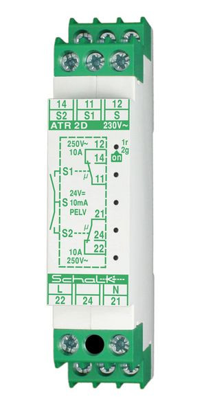 | Kurzbeschreibung | Aktives Doppel-Trennrelais 230V AC / 24V DC PELV, 2 Wechsler |
