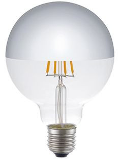 LED-Globeform Filament 95x135mm, dimmbar LED Globe mit 8 Filament-LED und silbernem Kuppenspiegel in klassischer Glühlampen-Optik, vergleichbar mit ca. 40W Quecksilbergehalt (mg): 0 Zündzeit/Startzeit (s): <0,5