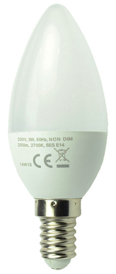 | Kurzbeschreibung | LED-Kerzenlampe 37x108mm E14 85-265VAC/60-269VDC 4,5W 450Lm 6000K 180° matt |