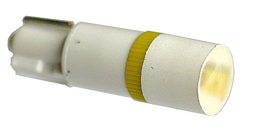 Chip LED bipolar 5,6x20mm Spezielle Kombination aus Reflektor und Streulinse. Dadurch wird eine Abstrahlcharakteristik ähnlich einer Mehr-Chip LED erreicht. Zwischen Reflektorelement und Sokel ist zur Realisierung der Bauhöhe ein Isolierteil in Leuchtfarbe der LED eingebaut. Innenraum im Bereich der Kunststoffteile zur verbesserten Wärbeabfuhr vergossen. Keine UV/IR-Strahlung. Energieeffizienzklasse: nicht kennzeichnungspflichtig Quecksilbergehalt (mg): 0