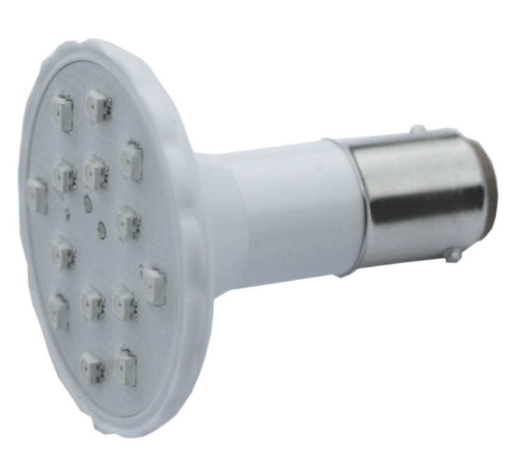 | Kurzbeschreibung | LED-Lampe für Straßenbahn 44x50 mm BA15s 24-32V 30mA rot mit 14 SMD-LED |