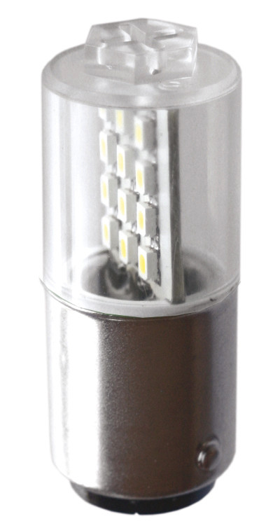 | Kurzbeschreibung | LED-Leuchte 18,5x50mm mit 12 SMD-LED Ba15d 230VAC/DC mit BG blau Abstrahlwinkel 180° |