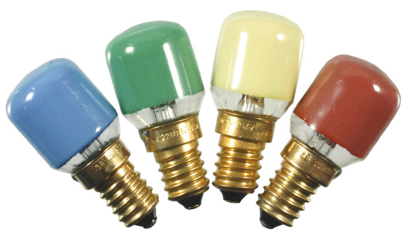 Birnenformlampe 26x57mm Farbige Birnenlampe E14, gelb. Eingesetzt werden die Lampen dieser Bauform überall dort, wo nur sehr wenig Platz für die Beleuchtung zur Verfügung steht, beispielsweise in Haushaltsgeräten, Kühlschrank, Möbeln und Nähmaschinen. Energieeffizienzklasse: EOL