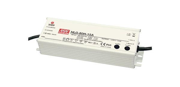 | Kurzbeschreibung | LED Schaltnetzteil 195,6x61,5x38,8mm 90-305VAC/12VDC max.60W IP65, HLG-80H-12A |