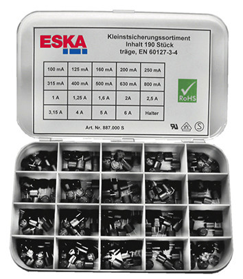 | Kurzbeschreibung | Kleinstsicherungssortiment träge mit 170 Kleinstsicherungen und 30 Sicherungshalter |