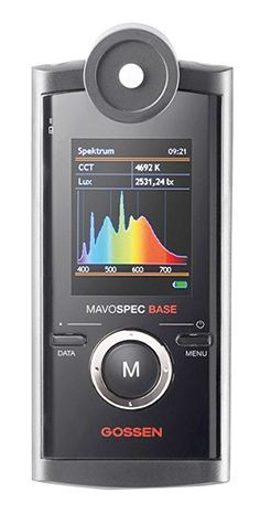 MAVOSPEC BASE Spektralmessgerät hochwertiges, miniaturisiertes Spektrometer für Messung aller herkömmlichen und modernen Lichtquellen wie LEDs oder OLEDs, Ermittlung von Beleuchtungsstärke, ähnlichste Farbtemperatur, Farbwiedergabeindizes, Farbkoordinaten nach verschiedenen CEI Standards, Flicker, spektrale Leistungsverteilung, Peak-Wellenlänge und dominante Wellenlänge, 4 GB Micro SD und Steckernetzteil, auswechselbarer Akku mit mehr als 8 h Betriebsdauer, Im Lieferumfang: Alu-Koffer mit Etui, USB-Kabel, Netzteil, Trageleine