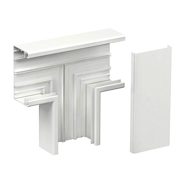 INKA 100/52 T-Stück oben, Aluminium weiß RAL9016 TypINKA TSU 152/52 9016. Formstück mit 80-mm-Frontöffnung. Kann mithilfe von Kabelträgern in Fächer unterteilt werden. Material Aluminium.