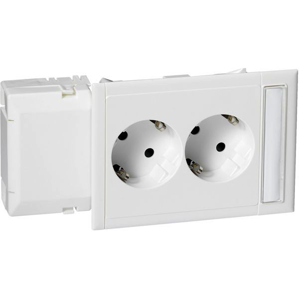 | Kurzbeschreibung | Doppelsteckdose Slave mit Schriftfeld f Kanaleinbau weiß RAL9016 Typ:CYB-PS 9016 |