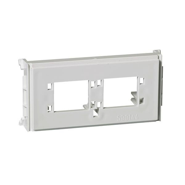 Montageplatte 2XREICHLE & De-Massari ohne Beschriftungsträger RJ45 R9010. Das CYB-Niederspannungs-Installationszubehörsystem ist für Installationsträger mit F80-Frontöffnung ausgelegt. Zusätzlich kann es an der Wand oder in einer Gerätedose montiert werden. Das System ist rahmenlos und ohne Dose und besteht aus Abdeckungen zum Aufrasten mit Montageplatten und Steckverbindern. Die Abdeckungen sind in abgeschrägter oder flacher Ausführung erhältlich. Die CYB-BK-Einbaukits enthalten Montagerahmen, Abdeckung und Schriftfeld. In Kombination mit verschiedenen Befestigungsblechen und Steckverbindern stellen die Einbaukits komplette Anschlusskits dar.