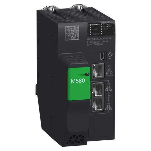 Dieser Standalone-Prozessor ist Teil der Modicon M580-Reihe, einer speicherprogrammierbaren Steuerungen (PAC/SPS) optional mit integrierter funktionaler Sicherheit und mit integriertem Ethernet. Er bietet eine maximale Konfiguration von 4 lokalen Racks mit bis zu 1.024 digitalen E/A-Kanälen und 256 analogen E/A-Kanälen. Dieses robuste Produkt kann in raueren Umgebungen und in einem erweiterten Temperaturbereich von -25°C bis +70°C/-13°F bis 158°F eingesetzt werden. Dieser Controller kann Hybridherstellern dabei helfen, einen besseren, messbaren und früheren ROI zu erzielen und ihre Projektinvestitionen in weniger als drei Monaten bis zu 100 % zu amortisieren. Er ist mit 1 Ethernet-Port für den Service, 2 Ethernet-Ports für das Ring-Gerätenetzwerk (EtherNet/IP und Modbus TCP) und 1 USB-Typ mini B für die Programmierkonsole ausgestattet. Er verfügt über ein integriertes RAM von 4 MB für Programme, 384 KB für Daten, 10 KB für den Systemspeicher und einen erweiterbaren Flash-Speicher von 4 GB für die Datenspeicherung. Dieses Produkt ist nach IP20 eingestuft und bietet 780.710 Stunden MTBF. Dieses Modul erfüllt die Anforderungen von Anwendungen in den Bereichen Transport, Wasser und Abwasser, verpackte Konsumgüter, Bergbau, Mineralien, Metalle, Stromerzeugung, Energie und Chemie sowie Rechenzentren. Es erfüllt die CE-, UL-, CSA-, RCM-, EAC-, UKCA- und ATEX/IECEx-Normen für die Zone 2/22 und ist für Anwendungen in der Stromerzeugung, der Handelsmarine, der Eisenbahn und in Gefahrenzonen zertifiziert. Die CPU muss in den mit 00 und 01 gekennzeichneten Rack-Steckplätzen installiert werden, wobei 2 Schrauben auf der Oberseite der CPU angebracht werden müssen, um das Modul im Rack zu halten. Dieses Produkt kann in Kombination mit Modicon X80 (E/A, Backplane, Kabel) verwendet werden und arbeitet mit der Programmiersoftware EcoStruxure Control Expert. Modicon M580 verbessert die Zuverlässigkeit und Nachhaltigkeit sowie die Produktivität durch hohe Leistung und erhöht die betriebliche Rentabilität durch effizienten Zugriff auf Daten.