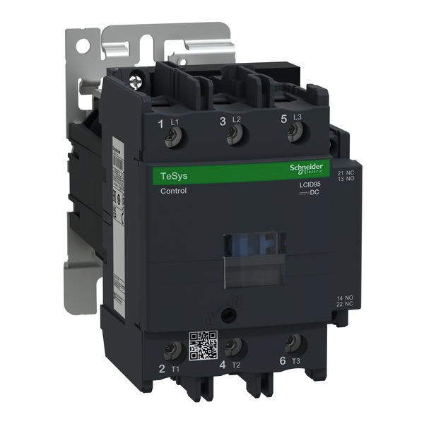 Leistungsschütz TeSys LC1D. 3 polig, 3 Schließer. Zusätzliche Hilfskontakte- 1 Schließer + 1 Öffner, Bemessungsbetriebsleistung bei AC-3, 400 V 45 kW, Bemessungsbetriebsstrom Ie bei AC-3, 400 V 95 A, Spule 24 V DC. Abmessung (BxHxT) 85x127x186 mm, Gewicht 2,61 kg. Kategorie AC-3, AC-4, AC-1. ohne integriertes Beschaltungsmodul. Schnelle und einfache Einrichtung. Sichere und langlebige Stromverbindung mit Everlink und Federklemmen. Geeignet für Sicherheitsanwendungen durch mechanisch gekoppelte Kontakte und Spiegelkontakte. Zertifizierungen nach RINA, BV, LROS (Lloyds register of shipping), GOST, CCC, GL, DNV. Produktstandards gem.