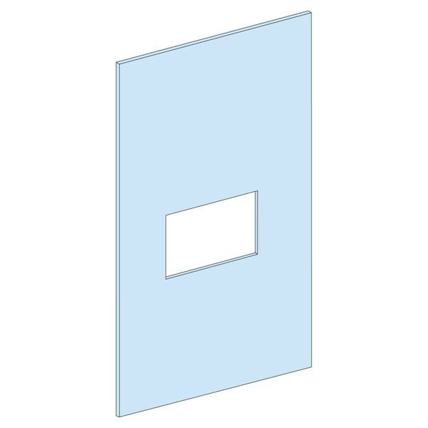 PrismaSeT P. Frontplatte mit Ausschnitt für einen 3- oder 4-poligen ComPacT NSX oder NSX Vigi bis 250 A mit Kipphebelantrieb, Drehantrieb oder Motorantrieb in vertikaler Einbaulage in Festeinbautechnik. mit einer Höhe von 9 Moduleinheiten für Schaltschränke mit einer Breite von 400 mm. Pulverbeschichtet in RAL9003 struktur.