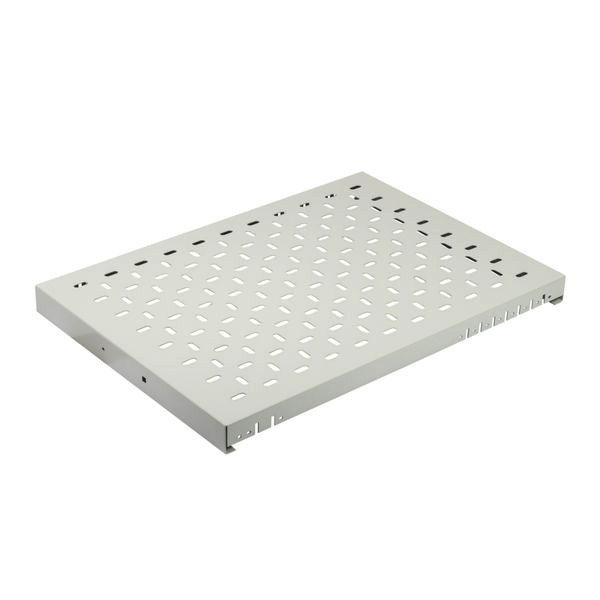Festrahmen 19 durch werkzeuglose Befestigung zwischen den vorderen und hinteren 19-Zoll-Säulen. Stahlblech, RAL 7035 grau lackiert, 100 kg zulässige Belastung. Geeignet für 600mm, 800mm oder 1000mm Rack-Tiefe, Abstand zwischen den Befestigungspunkten 258mm, einstellbar in 25mm-Schritten. Diese Ablage ist gelocht. Produktfamilie Actassi.