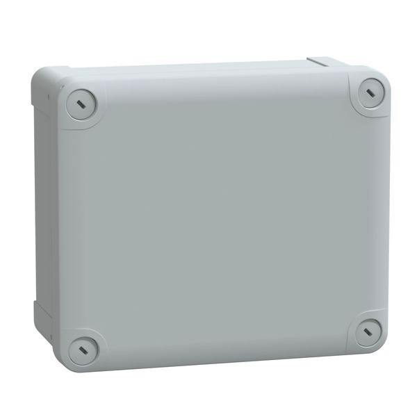 PanelSeT TBP Industrie-PC-Box mit Deckel H20. Innenmaße 175 x 150 x 80 mm. Ext 193 x 164 x 87 mm. Wandmontagegehäuse mit flachem Deckel. Schraubenverriegelung mit unverlierbaren Kunststoffschrauben (Schlitz). Zertifizierungen DEMKO, SEMKO, TÜV, UL. UL 508 A Standard. Feuerbeständigkeit 960°. Polycarbonat, Umgebungstemperatur für Lagerung/Betrieb (-15 bis 60 °C)/(-25 bis 80 °C). IP66 (NEMA 4.4X), IK08, Grau RAL 7035, Isolationsklasse II. Verpackungseinheit 5 Stk.