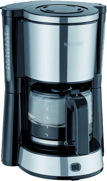 Schwenkfilter mit herausnehmbarem Filtereinsatz 1 x 4, Tropf-Stopp-Funktion, außenliegende beidseitige Wasserstandsanzeige, Ein-/Ausschalter mit Kontrollleuchte, Warmhalteplatte und automatische Abschaltung, Kabelstaufach
