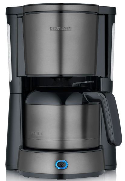 Schwenkfilter mit herausnehmbarem Filtereinsatz 1 x 4 mit Tropfverschluss, Edelstahl-Thermoskanne mit Durchbrühdeckel und praktischer Einhand-Bedienung, beidseitige Wasserstandsanzeige, Ein-Aus-Taster mit Kontrollleuchte, automatische Abschaltung, integriertes Kabelfach