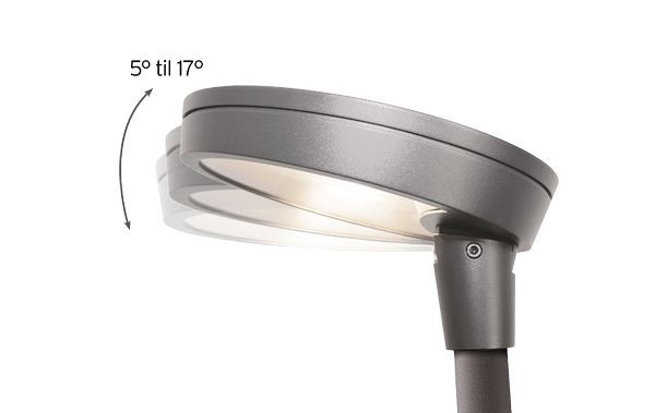 Leuchte zur Mastmontage, IP66-klassifiziert. Leuchtengehäuse aus Druckguss-Aluminium, Pulverbeschichtung in schwarzer oder grauer Struktur. Reflektor aus Aluminium, weiße Pulverbeschichtung. Optik aus gehärtetem Glas mit direkter Lichtverteilung. Für Montage an 60 mm Mast. Design: Christian Hvidt