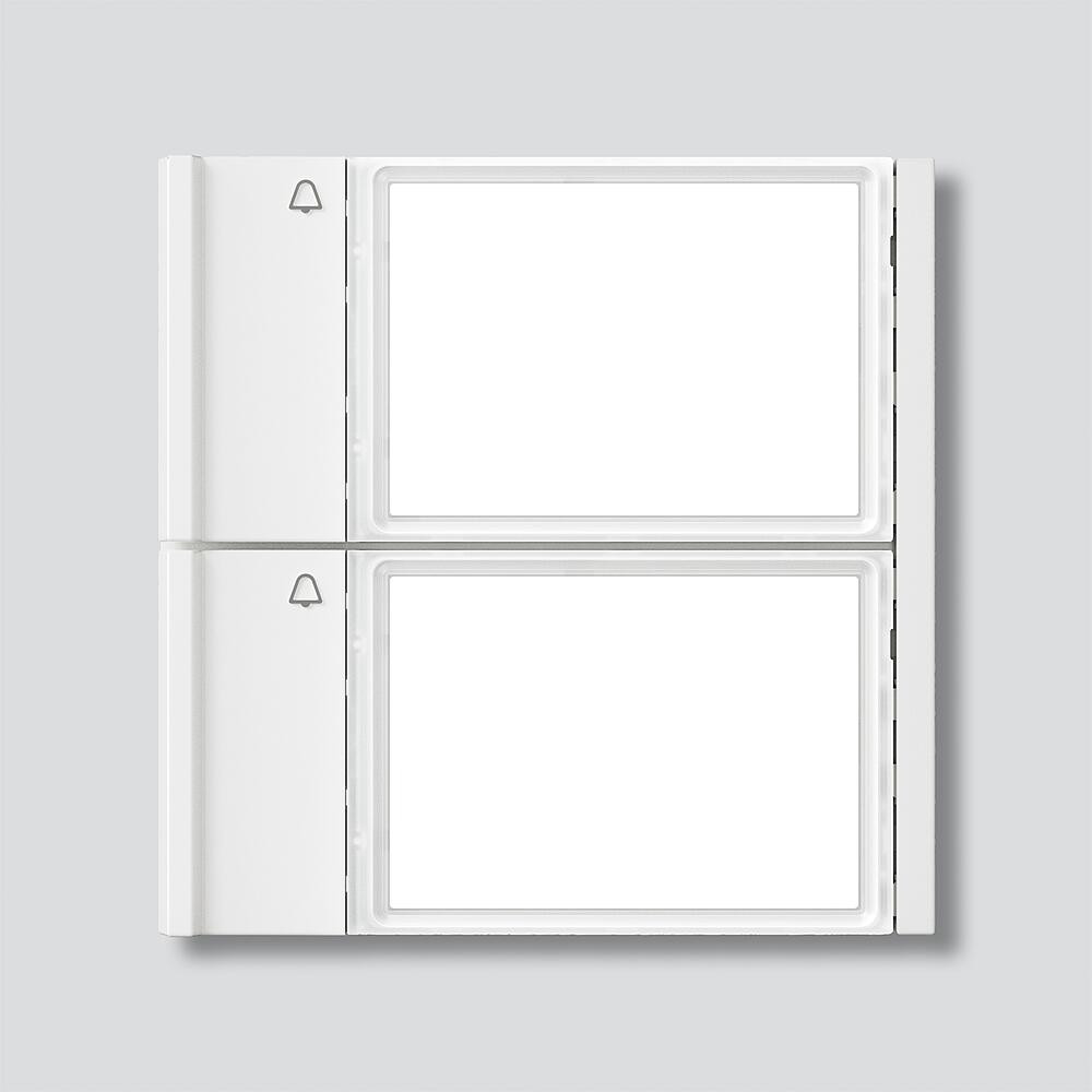 Ruftasten für Siedle Vario: 2 Ruftasten mit Glockensymbol und hinterleuchtbarem, wechselbaren Namensschild. Einfache Verkabelung durch vorkonfektionierte, steckbare Kabelverbindung.