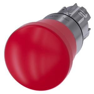 NOT-HALT-Pilzdrucktaster, 22 mm, rund, Metall, hochglanz, rot, 40 mm, zwangsläufige Verrastung, gemäß DIN EN ISO 13850, Zugentriegelung NOT-HALT-Pilzdrucktaster SIRIUS ACT nach DIN EN ISO 13850 zur Steuerung von sicherheitsgerichteten Anwendungen mit Überlistsicherheit. Unter dem Markennamen SIRIUS ACT bietet Siemens ein einzigartiges Portfolio an Befehls- und Meldegeräten mit weltweiten Produkt-Zulassungen in drei modernen Designreihen aus robustem Echtmetall und hochwertigem Kunststoff. Das innovative Aufschnappkonzept vereinfacht die Montage so weit, dass dafür nur eine Hand und kein Spezialwerkzeug erforderlich ist. Als Montagebohrungen genügen nutfreie Löcher, da bereits ein 100%iger Verdrehschutz integriert ist. Dank der durchgängig hohen Schutzart sind die robusten Geräte industrietauglich und für den Außeneinsatz geeignet. Sogar die Reinigung mit Hochdruckstrahl ist möglich. Weder Staub, Öle noch aggressive Laugen können den zuverlässigen Betrieb stören. Neben der Standardverdrahtung können die meisten Geräte auch über PROFINET, AS-Interface oder IO-Link an die Steuerung angebunden werden. Damit reduzieren Sie Ihren Verdrahtungsaufwand, minimieren Fehlerquellen und gewinnen mehr Flexibilität. Komfortabel unterstützt der grafische Online-Konfigurator bei Auswahl und Bestellung von Einzelgeräten, Gehäusen und Beschriftungen. Umfangreiche Dokumentation (z.B. Handbuch, 3D-Daten, Anschlussdiagramm) ist verfügbar. Lieferbare Ausführungen: 30/40/60 mm Pilz-Durchmesser, beleuchtet/unbeleuchtet, Zug-/Dreh-/Schlossentriegelung. Hinweis: Einzelgerät, Halter und Module bitte extra bestellen. SIRIUS ACT - Performance in Action beim Befehlen und Melden. Einfach montiert, einfach stark, einfach perfekt.