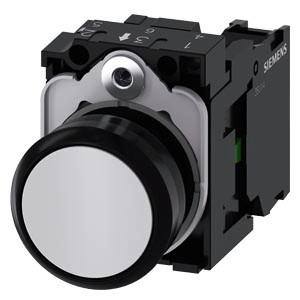 Drucktaster, 22 mm, rund, Kunststoff, weiß, Druckknopf, flach, tastend, mit Halter 1S, Schraubanschluss Drucktaster SIRIUS ACT zur Schaltung und Steuerung elektrischer Verbraucher. Unter dem Markennamen SIRIUS ACT bietet Siemens ein einzigartiges Portfolio an Befehls- und Meldegeräten mit weltweiten Produkt-Zulassungen in drei modernen Designreihen aus robustem Echtmetall und hochwertigem Kunststoff. Das innovative Aufschnappkonzept vereinfacht die Montage so weit, dass dafür nur eine Hand und kein Spezialwerkzeug erforderlich ist. Als Montagebohrungen genügen nutfreie Löcher, da bereits ein 100%iger Verdrehschutz integriert ist. Dank der durchgängig hohen Schutzart sind die robusten Geräte industrietauglich und für den Außeneinsatz geeignet. Sogar die Reinigung mit Hochdruckstrahl ist möglich. Weder Staub, Öle noch aggressive Laugen können den zuverlässigen Betrieb stören. Neben der Standardverdrahtung können die meisten Geräte auch über PROFINET, AS-Interface oder IO-Link an die Steuerung angebunden werden. Damit reduzieren Sie Ihren Verdrahtungsaufwand, minimieren Fehlerquellen und gewinnen mehr Flexibilität. Komfortabel unterstützt der grafische Online-Konfigurator bei Auswahl und Bestellung von Einzelgeräten, Gehäusen und Beschriftungen. Umfangreiche Dokumentation (z.B. Handbuch, 3D-Daten, Anschlussdiagramm) ist verfügbar. Lieferbare Ausführungen: mehrere Farben, beleuchtet/unbeleuchtet, mit/ohne Beschriftung, verrastende/tastende Betätigung, verschiedene Druckknopf- und Frontringhöhen. Hinweis: Komplettgerät, Lieferung inklusive Halter und Module. SIRIUS ACT - Performance in Action beim Befehlen und Melden. Einfach montiert, einfach stark, einfach perfekt.