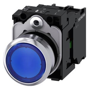 Leuchtdrucktaster, 22 mm, rund, Metall, hochglanz, blau, Druckknopf, flach, tastend, mit Halter, 1S, LED-Modul mit integrierter LED AC/DC 24V, Schraubanschluss Leuchtdrucktaster SIRIUS ACT zur Schaltung und Steuerung elektrischer Verbraucher. Unter dem Markennamen SIRIUS ACT bietet Siemens ein einzigartiges Portfolio an Befehls- und Meldegeräten mit weltweiten Produkt-Zulassungen in drei modernen Designreihen aus robustem Echtmetall und hochwertigem Kunststoff. Das innovative Aufschnappkonzept vereinfacht die Montage so weit, dass dafür nur eine Hand und kein Spezialwerkzeug erforderlich ist. Als Montagebohrungen genügen nutfreie Löcher, da bereits ein 100%iger Verdrehschutz integriert ist. Dank der durchgängig hohen Schutzart sind die robusten Geräte industrietauglich und für den Außeneinsatz geeignet. Sogar die Reinigung mit Hochdruckstrahl ist möglich. Weder Staub, Öle noch aggressive Laugen können den zuverlässigen Betrieb stören. Neben der Standardverdrahtung können die meisten Geräte auch über PROFINET, AS-Interface oder IO-Link an die Steuerung angebunden werden. Damit reduzieren Sie Ihren Verdrahtungsaufwand, minimieren Fehlerquellen und gewinnen mehr Flexibilität. Komfortabel unterstützt der grafische Online-Konfigurator bei Auswahl und Bestellung von Einzelgeräten, Gehäusen und Beschriftungen. Umfangreiche Dokumentation (z.B. Handbuch, 3D-Daten, Anschlussdiagramm) ist verfügbar. Lieferbare Ausführungen: mehrere Farben, beleuchtet/unbeleuchtet, mit/ohne Beschriftung, verrastende/tastende Betätigung, verschiedene Druckknopf- und Frontringhöhen. Hinweis: Komplettgerät, Lieferung inklusive Halter und Module. SIRIUS ACT - Performance in Action beim Befehlen und Melden. Einfach montiert, einfach stark, einfach perfekt.