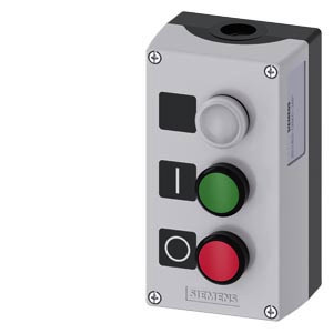 Gehäuse für Befehlsgeräte, 22 mm, rund, Gehäusematerial Kunststoff, Gehäuseoberteil grau, 3 Befehlsstellen Kunststoff, C=Leuchtmelder klar, Schild LED 24 V, Schraubanschluss, B=Drucktaster grün, Schild: I, 1S, Schraubanschluss, A=Drucktaster rot, Schild: O, 1Ö, Schraubanschluss, Bodenbefestigung, oben und unten je 1xM20, Schilder beigelegt Gehäuse SIRIUS ACT für die Montage der 22,5 mm Befehls- und Meldegeräte bei räumlich getrennter Anordnung von Steuereinheiten und Schaltschränken. Unter dem Markennamen SIRIUS ACT bietet Siemens ein einzigartiges Portfolio an Befehls- und Meldegeräten mit weltweiten Produkt-Zulassungen in drei modernen Designreihen aus robustem Echtmetall und hochwertigem Kunststoff. Das innovative Aufschnappkonzept vereinfacht die Montage so weit, dass dafür nur eine Hand und kein Spezialwerkzeug erforderlich ist. Als Montagebohrungen genügen nutfreie Löcher, da bereits ein 100%iger Verdrehschutz integriert ist. Dank der durchgängig hohen Schutzart sind die robusten Geräte industrietauglich und für den Außeneinsatz geeignet. Sogar die Reinigung mit Hochdruckstrahl ist möglich. Weder Staub, Öle noch aggressive Laugen können den zuverlässigen Betrieb stören. Neben der Standardverdrahtung können die meisten Geräte auch über PROFINET, AS-Interface oder IO-Link an die Steuerung angebunden werden. Damit reduzieren Sie Ihren Verdrahtungsaufwand, minimieren Fehlerquellen und gewinnen mehr Flexibilität. Komfortabel unterstützt der grafische Online-Konfigurator bei Auswahl und Bestellung von Einzelgeräten, Gehäusen und Beschriftungen. Umfangreiche Dokumentation (z.B. Handbuch, 3D-Daten, Anschlussdiagramm) ist verfügbar. Lieferbare Ausführungen: gelb/grau, Kunststoff/Metall, 1-6 Befehlstellen, Leergehäuse/Vorbestückung, wahlweise mit AS-Interface-Anbindung. SIRIUS ACT - Performance in Action beim Befehlen und Melden. Einfach montiert, einfach stark, einfach perfekt.