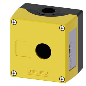 Gehäuse für Befehlsgeräte, 22 mm, rund, Gehäusematerial Metall, Gehäuseoberteil gelb, 1 Befehlsstelle Metall, Vertiefung für Schild, ohne Bestückung Gehäuse SIRIUS ACT für die Montage der 22,5 mm Befehls- und Meldegeräte bei räumlich getrennter Anordnung von Steuereinheiten und Schaltschränken. Unter dem Markennamen SIRIUS ACT bietet Siemens ein einzigartiges Portfolio an Befehls- und Meldegeräten mit weltweiten Produkt-Zulassungen in drei modernen Designreihen aus robustem Echtmetall und hochwertigem Kunststoff. Das innovative Aufschnappkonzept vereinfacht die Montage so weit, dass dafür nur eine Hand und kein Spezialwerkzeug erforderlich ist. Als Montagebohrungen genügen nutfreie Löcher, da bereits ein 100%iger Verdrehschutz integriert ist. Dank der durchgängig hohen Schutzart sind die robusten Geräte industrietauglich und für den Außeneinsatz geeignet. Sogar die Reinigung mit Hochdruckstrahl ist möglich. Weder Staub, Öle noch aggressive Laugen können den zuverlässigen Betrieb stören. Neben der Standardverdrahtung können die meisten Geräte auch über PROFINET, AS-Interface oder IO-Link an die Steuerung angebunden werden. Damit reduzieren Sie Ihren Verdrahtungsaufwand, minimieren Fehlerquellen und gewinnen mehr Flexibilität. Komfortabel unterstützt der grafische Online-Konfigurator bei Auswahl und Bestellung von Einzelgeräten, Gehäusen und Beschriftungen. Umfangreiche Dokumentation (z.B. Handbuch, 3D-Daten, Anschlussdiagramm) ist verfügbar. Lieferbare Ausführungen: gelb/grau, Kunststoff/Metall, 1-6 Befehlstellen, Leergehäuse/Vorbestückung, wahlweise mit AS-Interface-Anbindung. SIRIUS ACT - Performance in Action beim Befehlen und Melden. Einfach montiert, einfach stark, einfach perfekt.