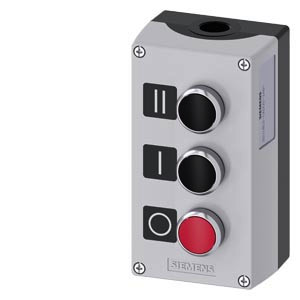 Gehäuse für Befehlsgeräte, 22 mm, rund, Gehäusematerial Metall, Gehäuseoberteil grau, 3 Befehlsstellen Metall, C=Drucktaste schwarz,Schild:II, 1S, Schraubanschluss, B=Drucktaster schwarz,Schild I, 1S, Schraubanschluss, A=Drucktaster rot, Schild: O, 1Ö, Schraubanschluss, Bodenbefestigung, oben und unten je 1xM20, Schilder beigelegt Gehäuse SIRIUS ACT für die Montage der 22,5 mm Befehls- und Meldegeräte bei räumlich getrennter Anordnung von Steuereinheiten und Schaltschränken. Unter dem Markennamen SIRIUS ACT bietet Siemens ein einzigartiges Portfolio an Befehls- und Meldegeräten mit weltweiten Produkt-Zulassungen in drei modernen Designreihen aus robustem Echtmetall und hochwertigem Kunststoff. Das innovative Aufschnappkonzept vereinfacht die Montage so weit, dass dafür nur eine Hand und kein Spezialwerkzeug erforderlich ist. Als Montagebohrungen genügen nutfreie Löcher, da bereits ein 100%iger Verdrehschutz integriert ist. Dank der durchgängig hohen Schutzart sind die robusten Geräte industrietauglich und für den Außeneinsatz geeignet. Sogar die Reinigung mit Hochdruckstrahl ist möglich. Weder Staub, Öle noch aggressive Laugen können den zuverlässigen Betrieb stören. Neben der Standardverdrahtung können die meisten Geräte auch über PROFINET, AS-Interface oder IO-Link an die Steuerung angebunden werden. Damit reduzieren Sie Ihren Verdrahtungsaufwand, minimieren Fehlerquellen und gewinnen mehr Flexibilität. Komfortabel unterstützt der grafische Online-Konfigurator bei Auswahl und Bestellung von Einzelgeräten, Gehäusen und Beschriftungen. Umfangreiche Dokumentation (z.B. Handbuch, 3D-Daten, Anschlussdiagramm) ist verfügbar. Lieferbare Ausführungen: gelb/grau, Kunststoff/Metall, 1-6 Befehlstellen, Leergehäuse/Vorbestückung, wahlweise mit AS-Interface-Anbindung. SIRIUS ACT - Performance in Action beim Befehlen und Melden. Einfach montiert, einfach stark, einfach perfekt.