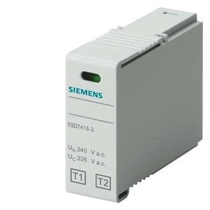 Steckteil T1/T2, L-N, Nennspannung Un 240V A.C. Uc 335V A.C., IIMP 12,5kA, nur für 5SD7413-2 (3) und 5SD7414-2 (3) Überspannungsschutzgeräte zum Schutz vor Überspannungen in elektrischen Anlagen. Die Überspannungsschutzgeräte von Siemens, als wichtiger Bestandteil der SENTRON Schutzkomponenten für die Elektroinstallation, bieten effektiven Schutz bei Blitz und Überspannungen infolge atmosphärischer Einflüsse oder Schaltvorgängen. Komfortable Montage- und Anschlusstechnik sowie ein durchgängiges Design sind die Kennzeichen der Gerätefamilie. Ob für Infrastruktur oder für industrielle Anforderungen, Siemens bietet Überspannungsschutzgeräte für alle Anwendungen und jedes Einsatzgebiet. Die Siemens Überspannungsschutzgeräte zeichnen sich vor allem aus durch: 1. Effektiver Investitions- und Anlagenschutz vor Blitz und Überspannungen. 2. Für jeden Anwendungsfall der richtige Blitz-/ und Überspannungsschutz (Typ1 bis 3). 3. Fernmeldekontakt zum externen Upload der Zustandsanzeige. 4. Zuverlässige Sicherheit bei der Installation dank standardmäßig enthaltenem Umgreif- und Berührungsschutz. 5. Werkzeugloses Lösen von der Hutschiene. 6. Klar ersichtliche Fehleranzeige. 7. Datamatrix-Code vorne am Gerät bietet schnell und einfach alle Infos rund um den Blitz- und Überspannungsschutz. 8. Optimale Technik für Ihre Sicherheit - nur von Siemens.