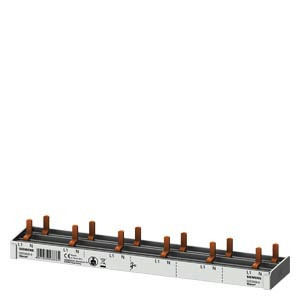 Stiftsa.schiene kompakt, 10mm2 Anschluss 1p/N 6x AFDD + 6x Kompaktgerät 1 TE berührungssicher 12 TE feste Länge Stiftsammelschiene SENTRON 5ST3 als Zusatzkomponente für Fehlerstrom-Schutzeinrichtungen und Leitungsschutzschalter. Diese Zusatzkomponenten sind universell anbaubar. Sie lassen sich einfach und komfortabel montieren und anschließen. Dank des standardmäßigen Berührungsschutzes ist die Sicherheit bei der Installation zuverlässig gewährleistet. Optimale Technik für Ihre Sicherheit - nur von Siemens.