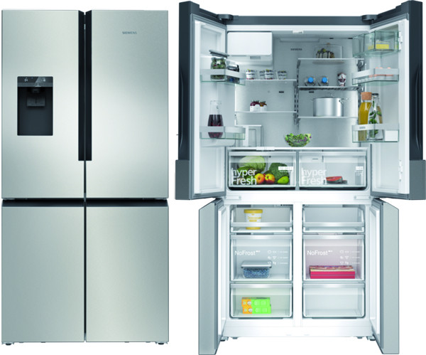Total noFrost - nie wieder abtauen und keine Wassertropfen mehr an der Rückwand des Kühlschranks, CrossDoor Leistung und Verbrauch Energieeffizienzklasse: E Energieverbrauch / Jahr: 327 kWh/a Geräuscheffizienzklasse / Geräusch-Wert: C / 39 dB Nutzinhalt gesamt: 574 l Design Gebürsteter Stahl antiFingerprint Horizontal und vertikal integrierter Griff Metallrückwand LED Beleuchtung freezerLight - LED Beleuchtung im Gefrierteil Innenausstattung mit Metall-Applikationen Komfort und Sicherheit Total noFrost: nie wieder abtauen und keine Wassertropfen mehr an der Rückwand des Kühlschranks Abtau-Automatik im Kühlteil Elektronische Temperaturregelung digital ablesbar Getrennte Temperaturregelung für Kühl- und Gefrierraum Vernetztes Gerät: Home Connect: Fernstart und Fernüberwachung Home Connect-fähig über WLAN superKühlen superGefrieren Multi-Airflow-System Optische Warnanzeige Tür offen, Akustische Warneinrichtung Akustischer Alarm, Optische Warnanzeige bei Temperaturanstieg im Gefrierteil Kindersicherung, Sabbat-Schaltung, Energie-Sparschaltung, Urlaubsschaltung Abschliessbar Eis und Wasser Crushed Eis, Eiswürfel oder kaltes Trinkwasser bei Betätigung der Spendertaste mit LED Beleuchtung Automatischer Eiswürfelbereiter Dispenser für Trinkwasser, Crushed Ice, Eiswürfel Eisherstellung/Tag IceM kg: 5 kg Fassungsvermögen Wassertank L: 3.8 l Kühlteil Nutzinhalt Kühlfächer: 375 l 5 Abstellflächen aus Sicherheitsglas, davon 5 höhenverstellbar 1 teilbar mit Parkmöglichkeit im Gerät Multifunktions-Ablage 3 Türabsteller und 1 Flaschenabsteller Butter-/Käsefach Frischhaltesystem 1 hyperFresh ?0°C? Box - Fisch und Fleisch bleiben länger frisch, 1 hyperFresh Box mit Feuchteregelung auf Rollen -hält Obst und Gemüse länger frisch Gefrierteil Nutzinhalt Tiefkühlfächer: 199 l Gefriervermögen in 24 Std.: 16 kg 6 transparente Gefriergut-Schubladen Maße Gerätemaße ( H x B x T): 183.0 cm x 90.5 cm x 73.1 cm Technische Informationen 4 Rollen zum leichteren Transport, 3 davon höhenverstellbar zur Ausrichtung 220 - 240 V Länge des Anschlusskabel: 240 cm Klimaklasse: SN-T Wandabstandshalter Zubehör Länderspezifische Optionen Auf Basis der Ergebnisse der Normprüfung über 24 Std. Tatsächlicher Verbrauch abhängig von Nutzung/Standort des Geräts.