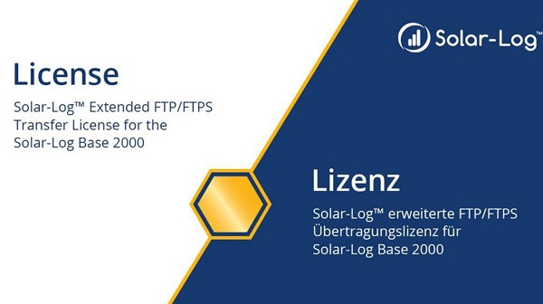 Solar-Log™ FTP/FTPS Lizenz 257065 für SolarLog Base 2000 Die FTP/FTPS Lizenz erweitert die Möglichkeiten für den Datenexport auf Fremdportale. Mit dieser Lizenz kann der Solar-Log Base 2000 die Daten mehrmalig, zyklisch übertragen.