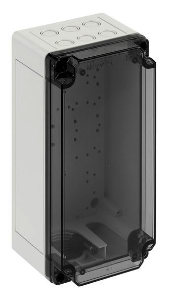 | Kurzbeschreibung | Leergehäuse m. Schiebedichtung, Schutzart IP54, Schlagfestigkeit IK07, Schutzklasse II, Bemessungsspannung 400V AC, halogenfrei |