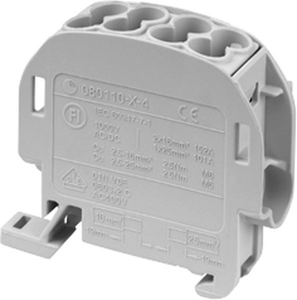 Hauptleitungsabzweigklemme mit 4 Klemmstellen 25mm², 1-polig, 1-polig-fingersicher