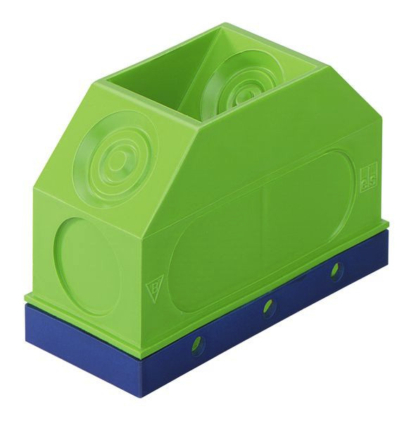 Kuppelkasten, als Deckenauslass und Wand-Decken-Verbindung im Ortbeton bzw. Großtafelbau, mit Schutzart IP00, Bemessungsisolationsspannung: 400V AC, halogenfrei, Anzahl Einführungen 45°: 8, Klebebefestigung oder Nagelbefestigung, Membran zur Lochung, Dichtbereich M16-M25