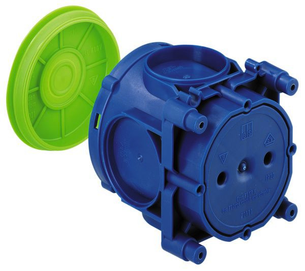 mit glatter Stirnseite für Klebebefestigung Großrohrdose, 4 Schraubdome mit Schraubabstand 60mm, kombinierbar im Normabstand 71mm, vollisolierter Leitungsübergang, geeignet für alle Schalungsarten und Gegenschalung, mit Schutzart IP30, Bemessungsisolationsspannung: 400V AC, zertifiziert durch VDE (DIN EN 60670-1/-22 (VDE 0606-1/-22)), halogenfrei, 2-teilig, Klebebefestigung oder Nagelbefestigung, Membran zur Lochung, Dichtbereich M16-M40, stützholmfähig