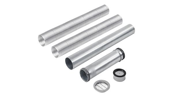 Beschreibung • Zubehörset bestehend aus DN80 Wanddurchführung für Außenwände bis zu 550 mm Wandstärke inklusive Wetterschutzgitter, Kleintierschutzgitter, Rückschlagklappe und zweimal 5 m DN80 Aluminium Flexrohr. • Ideal für Abluftführungen von Sole-Wasser Wärmepumpen mit natürlichem Kältemittel und einer Leistung kleiner als 20 kW.