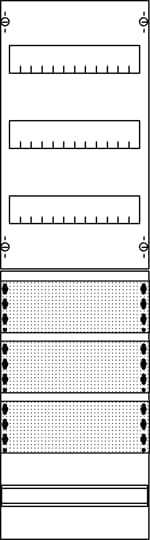 Die Mediafelder der Baureihe MM mit Verteilerfeld sind für den Einbau in Kleinverteiler vorgesehen. Die Felder sind unbestückt und nicht verdrahtet. Durch das großzügige Platzangebot können alle denkbaren Multimediakomponenten wie z. B. Router, Switch etc. eingebaut werden. Modulare Lochblech-Montageplatten ermöglichen die einfache Montage der Multimediageräte.