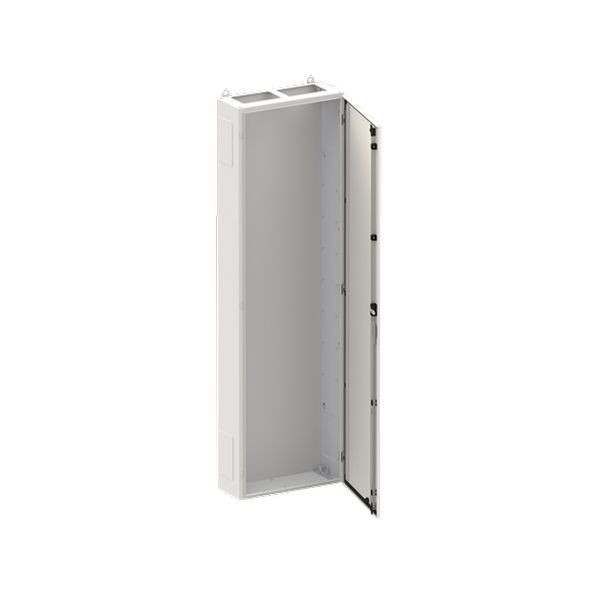 Standschrank, Baureihe TwinLine, Leerschrank, Montageart: Aufputz, teilversenkt, für den Innenbereich, mit Tür, Schutzklasse I (geerdet), Schutzart IP55, geltende Normen: DIN EN 61439-1, VDE 0660-600-1, DIN EN 61439-2, VDE 0660-600-2, DIN EN 61439-3, VDE 0660-600-3, IK-Code 08, pulverbeschichtet, in RAL 7035, Gehäuse aus Stahlblech, einflüglige Tür, Tür aus Stahlblech, mit Standardverschluss Doppelbart 3 mm, Türöffnungswinkel 180 Grad, Türanschlag rechts oder links, Rückwand aus Stahlblech, Leitungseinführung oben über Flanschöffnung ausgeschnitten, unten über Flanschöffnung vorgeprägt, seitlich über Flanschöffnung vorgeprägt, Abmessungen in mm (H x B x T): 1850 x 550 x 225, Rasteinheit 12 RE, Bauhöhe 8, Feldbreite 2, Platzeinheiten 288, vorbereitet für den Ausbau mit Zähler-, Verteilerfelder, Kombi-Sets, CombiLine-Module oder Montageplatten auf EDF-/WR-Montagegerüst