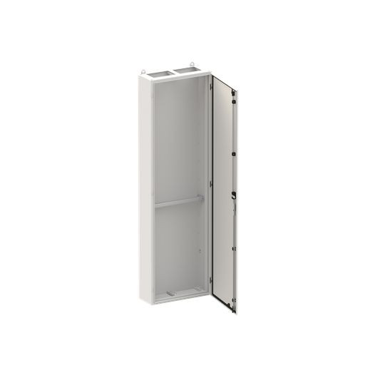 Standschrank, Baureihe TwinLine, Leerschrank, Montageart: Aufputz, teilversenkt, für den Innenbereich, mit Tür, Schutzklasse I (geerdet), Schutzart IP44, geltende Normen: DIN EN 61439-1, VDE 0660-600-1, IK-Code 08, pulverbeschichtet, in RAL 7035, Gehäuse aus Stahlblech, einflüglige Tür, Tür aus Stahlblech, mit Standardverschluss Doppelbart 3 mm, Türöffnungswinkel 180 Grad, Türanschlag rechts oder links, Rückwand aus Stahlblech, Leitungseinführung oben über Flanschöffnung ausgeschnitten, unten über Flanschöffnung vorgeprägt, Abmessungen in mm (H x B x T): 1850 x 550 x 225, Rasteinheit 12 RE, Bauhöhe 8, Feldbreite 2, Platzeinheiten 288, vorbereitet zum Einbau von Verteilerfeldern und CombiLine Modulsystemfeldern