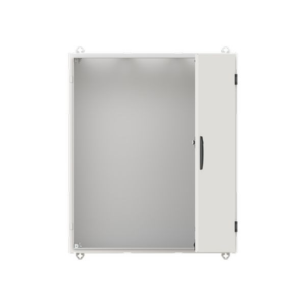 Wandschrank, Baureihe TwinLine, Leerschrank, Montageart: Aufputz, teilversenkt, für den Innenbereich, mit Tür, Schutzklasse I (geerdet), Schutzart IP55, geltende Normen: DIN EN 61439-1, VDE 0660-600-1, DIN EN 61439-2, VDE 0660-600-2, DIN EN 61439-3, VDE 0660-600-3, IK-Code 08, pulverbeschichtet, in RAL 7035, Gehäuse aus Stahlblech, einflüglige Tür, Tür aus Stahlblech, mit Standardverschluss Doppelbart 3 mm, Türöffnungswinkel 180 Grad, Türanschlag rechts oder links, Rückwand aus Stahlblech, Leitungseinführung oben über Flanschöffnung ausgeschnitten, unten über Flanschöffnung vorgeprägt, seitlich über Flanschöffnung vorgeprägt, Abmessungen in mm (H x B x T): 950 x 800 x 275, Rasteinheit 6 RE, Bauhöhe 2, Feldbreite 3, Platzeinheiten 216, vorbereitet für den Ausbau mit Zähler-, Verteilerfelder, Kombi-Sets, CombiLine-Module oder Montageplatten auf EDF-/WR-Montagegerüst