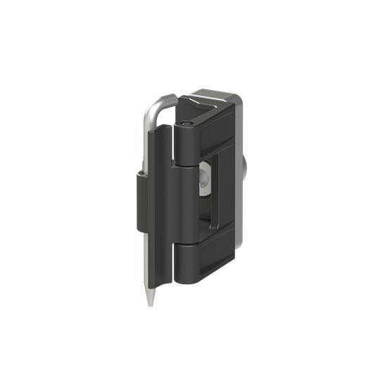 Türscharnier mit einem Türöffnungswinkel von 180 Grad, passend für Wand- und Standschränke TwinLine. Die Türscharniere mit außenliegendem Drehpunkt ermöglichen einen optimalen Zugang während des Ausbaus, beimBetrieb, der Wartung und der Betriebsüberwachung. Die einfache Montage und Austauschbarkeit ermöglicht einen leichten Umbau des Türanschlags.