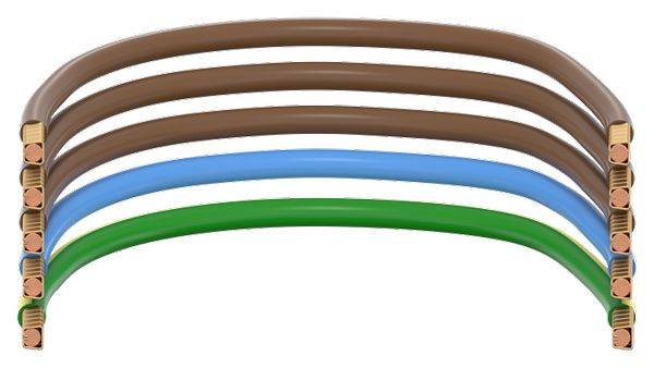 Zählerabgangsltg. 5-polig, 16qmm, 3x braun / 1x blau / 1x grün-gelb, von Zähler 1-stöckig zu AAR.