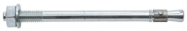 Bolzenanker B8-10/75, Stahl verzinkt, metrisches Gewinde mit Sechskantmutter, Schlüsselweite 13, Durchsteckmontage, sofort nach Montage belastbar, hohe Traglasten, geringe Randabstände, Feuerwiderstandsklasse F30, F60, F90 und F120 (M8 - M16), die zulässigen Werte für Zuglast bei Brandbeanspruchung entnehmen Sie der ETA, Montage ist gemäß der ETA durchzuführen! Bohrlochtiefe min. 65 mm, Klemmdicke 10 mm, Drehmoment beim Verankern 15 Nm, Durchgangsloch im anzuschließenden Bauteil 9 mm