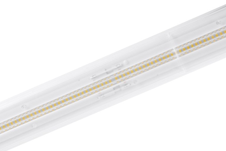 RTS LED linear luminaire for industrial and commercial applications. 1500 mm length with narrow optics provide homogenous light distribution for aisles and focus areas. Steel housing, White color, -20 … +30 °C operating temperature range, 4000 K, CRI 80, 3 SDMC. 70 W power consumption, 11200 lm luminous flux, 160 lm/W efficacy, 1500 mm x 70.2 mm x 78.6 mm (L x W x H) dimensions, IP20, IK03, 220-240 V 50/60 Hz, Class I. Lifespan L70:B50 120,000 hours.
