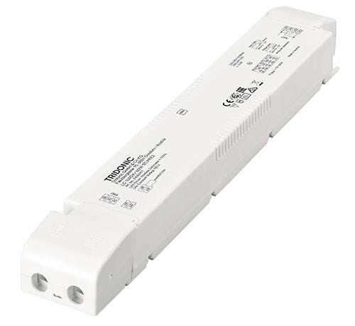 Konstantspannungstreiber, 100 W, 24 V LED-Treiber der Marke Tridonic mit Dimmoptionen Wireless und ready2 mAins (mit PWM-Dimmern), 50.000 h nominelle Lebensdauer, kleine Bauform (295 x 43 x 30 mm), Push-Terminals für einfache Verdrahtung, geeignet für Voutenbeleuchtung, Fassaden-Akzentbeleuchtung, Deckenintegration. Tridonic-Code: 28002417.