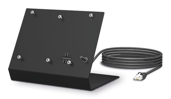 Grundfunktionen: Artikelart Zubehör, Kommunikationstechnologie IP, Grundfunktionalität Tischfuß für Audio-/Video-Innenstationen, Montage: Montageform Tischzubehör mit 4 Gummifüßen, Innenstationsbefestigung mit 4 Spreiznieten im Lieferumfang, Anschlusskabel RJ45, 2,5m CAT5 FTP, 40mm abgesetzt und Kabelhalter im Lieferumfang, Technische Daten: Material Gehäuse Stahl verzinkt, Farbe Gehäuse RAL9005 Tiefschwarz, Ausführung Oberfläche Gehäuse pulverbeschichtet Feinstruktur, Höhe Gehäuse (mm) 140, Breite Gehäuse (mm) 174, Tiefe Gehäuse (mm) 141, Neigungswinkel 60°, Gewicht ohne Verpackung 1,025 kg